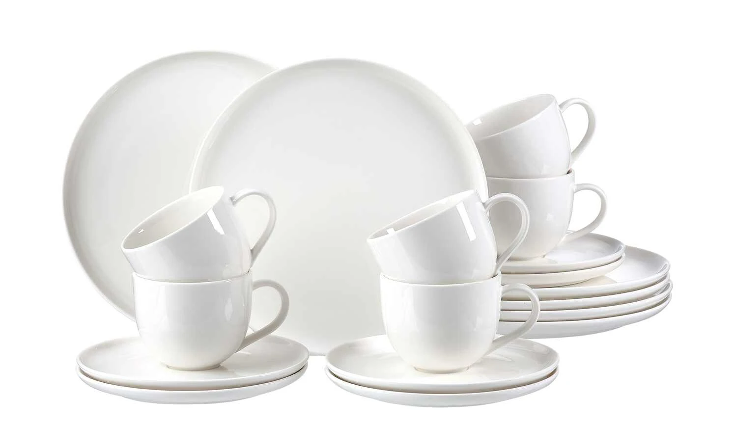 - Lieferumfang / mitgeliefertes Zubehör: 6 Kaffeetassen (220 ml, 8 cm Ø ), 6 Untertassen (16 cm Ø ), 6 Teller (21,5 cm Ø )